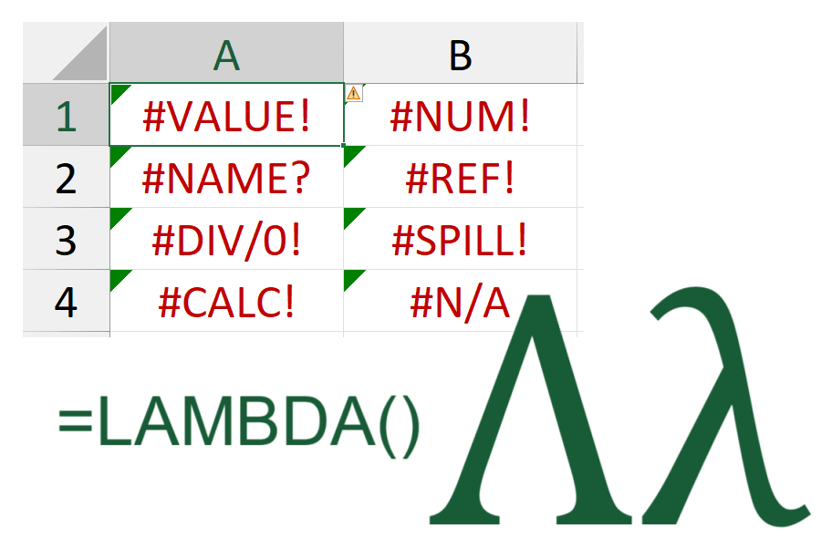 LAMBDA()functions; and - a custom function you can use to help implement error handling in